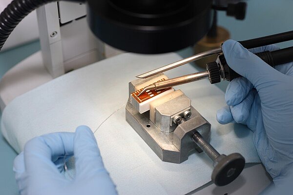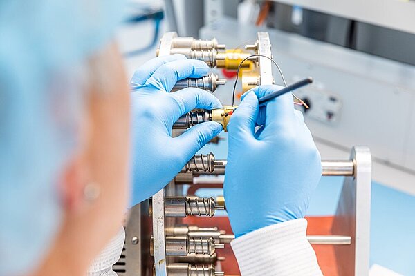 Integrating piezoceramic into our project partners' product can prove to be complicated, which is why PI Ceramic also offers complete solutions that can be directly integrated into the customer application. These so-called subassemblies are manufactured under clean room conditions. The product division’s experts take care of both the individual electric contacting of the elements, as well as their integration and assembly into the mechanical parts. For this reason, gluing and casting are also part of the standard refinement processes. For our customers, this speeds up integration into the final product, and in most cases, reduces the delivery times to the final customer.