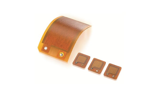 The curing temperature profile of the autoclave is selected so that a defined mechanical preload of the piezoceramic plates will result due to the different thermal expansion coefficients of the materials involved. The polymer coating of the GRP also serves as electrical insulation. Robust, bendable transducer elements that can be manufactured in large batches are the result of this patented technology.