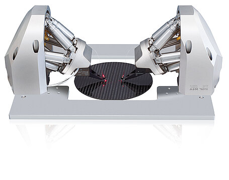The stacked system for positioning fibers or optical components operates in all three axes for coarse positioning with travel ranges from up to 25 mm at a minimum incremental motion of 2 µm, and a maximum velocity of 20 mm/s. For hexapods, the travel ranges in the X, Y, and Z direction are ±6.5; ±16 and ±8.5 mm, and for the three rotational axes at ±14.5, ±10, and ±10 degrees. The minimum incremental motion is 0.1 µm respectively. The system operates at a maximum velocity of 10 mm/s and can delicately position the user-defined center of rotation (pivot point) at any point in space, even at different angles, for example, when positioning fiber arrays. The NanoCube®, which takes care of the fine positioning for both systems, operates with travel ranges of 100 µm in all three axes and a minimum incremental motion of 2.5 nm. The positioning time for area scanning over 100 µm x 100 µm is under 1 second at a maximum deviation of the peak intensity of 0.02 dB.