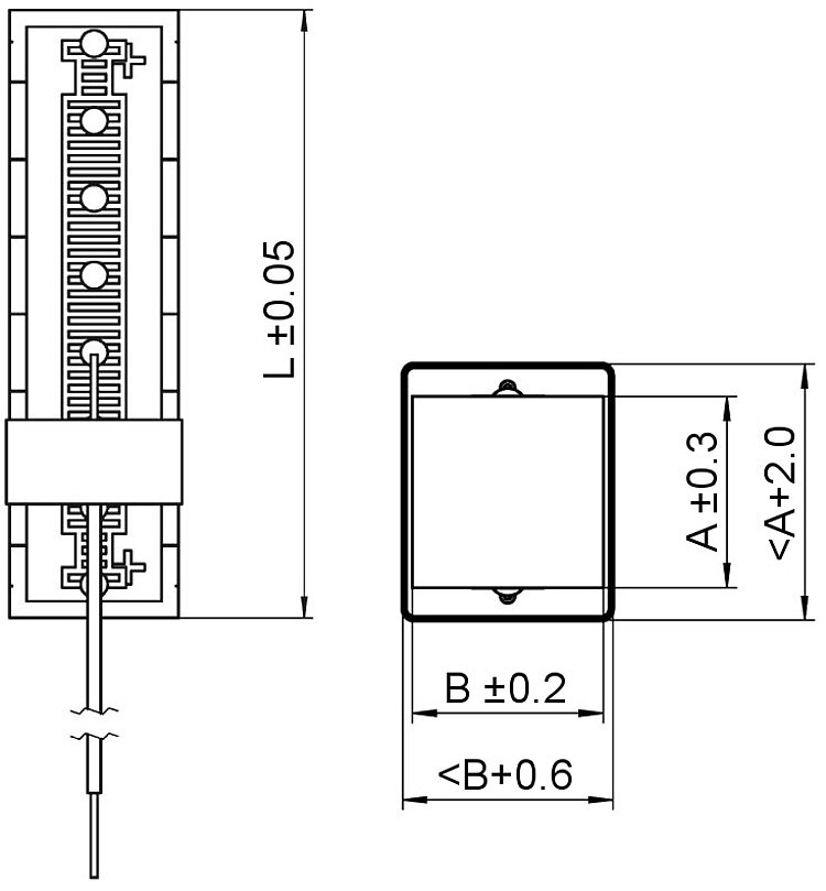 Dimensions A × B × L | Nominal travel range | Max. travel range | Blocking force | Stiffness | Electrical capacitance | Resonant frequency | |