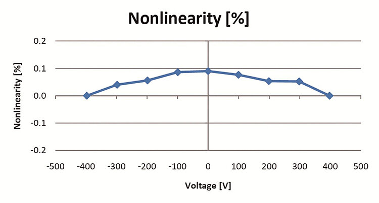 Picoactuator® longitudinal and shear actuators consist of a crystalline piezoelectric material. The specific displacement for shear actuators is ±0.02 % of the actuators length and ±0.01 % for longitudinal piezo actuators. This value is ten times lower when compared to piezo actuators made of lead zirconate titanate (PZT). The motion is highly linear and almost hysteresis-free.
