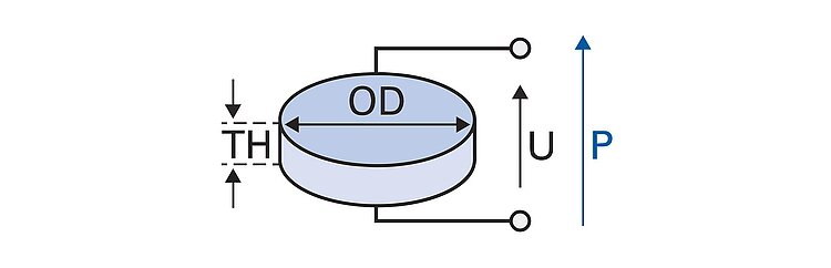 Piezoelectric disc, outside diameter (OD) = 5 mm × thickness (TH) = 2 mm, piezo material PIC181, electrode Ag screen printed