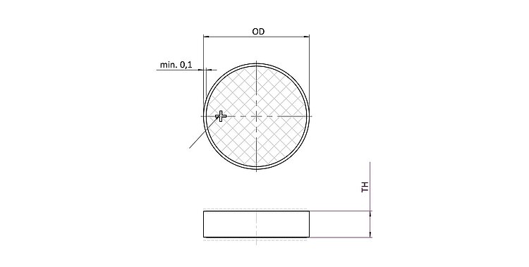 Piezoelectric disc, outside diameter (OD) = 2 mm × thickness (TH) = 1 mm, piezo material PIC255, electrode Ag screen printed