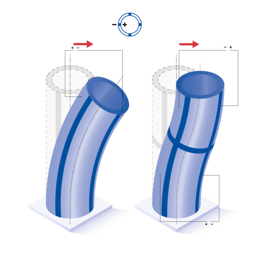 For example, for tubes with positive polarization direction on the inside and negative polarization direction on the outside, the deflection directions are as follows: